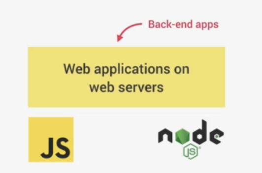 프론트엔드 뿐만 아니라 JS 백엔드 어플리케이션 제작에도 사용됩니다. 대표적으로 NodeJS가 있습니다.