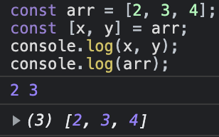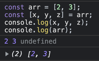 const [x, y, z] = arr; // array를 한 번에 분해