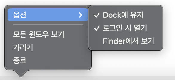 그리고 옵션을 눌러줍니다. 그리고 '로그인 시 열기'를 체크해줍니다.