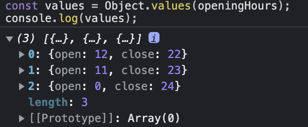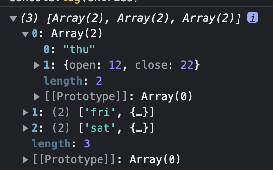 const entries = Object.entries(openingHours); // entries = openingHours.entries()