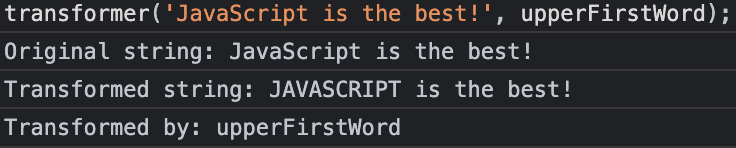 transformer 함수에 upperFirstWord, oneWord를 각각 적용한 후의 결과값입니다.
