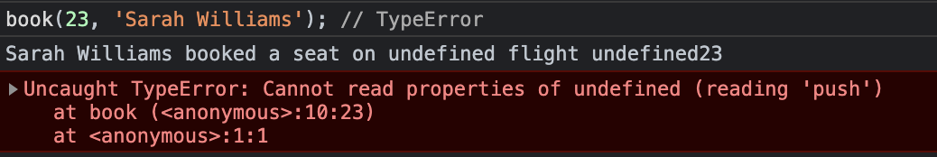 book(23, 'Sarah Williams'); // TypeError