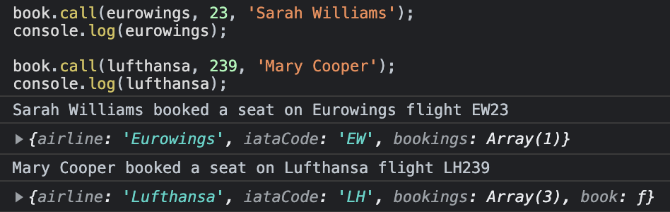 book.call(eurowings, 23, 'Sarah Williams');