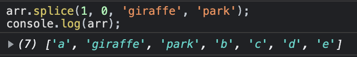 splice 세 번째 인수부터는 시작지점을 기준으로 Array에 새 element를 추가를 해줍니다.