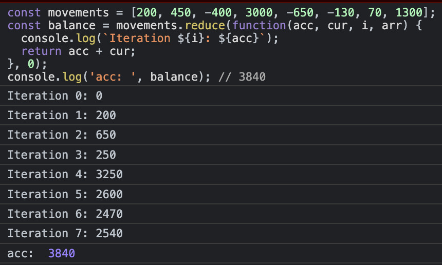 const balance = movements.reduce(function(acc, cur, i, arr) {