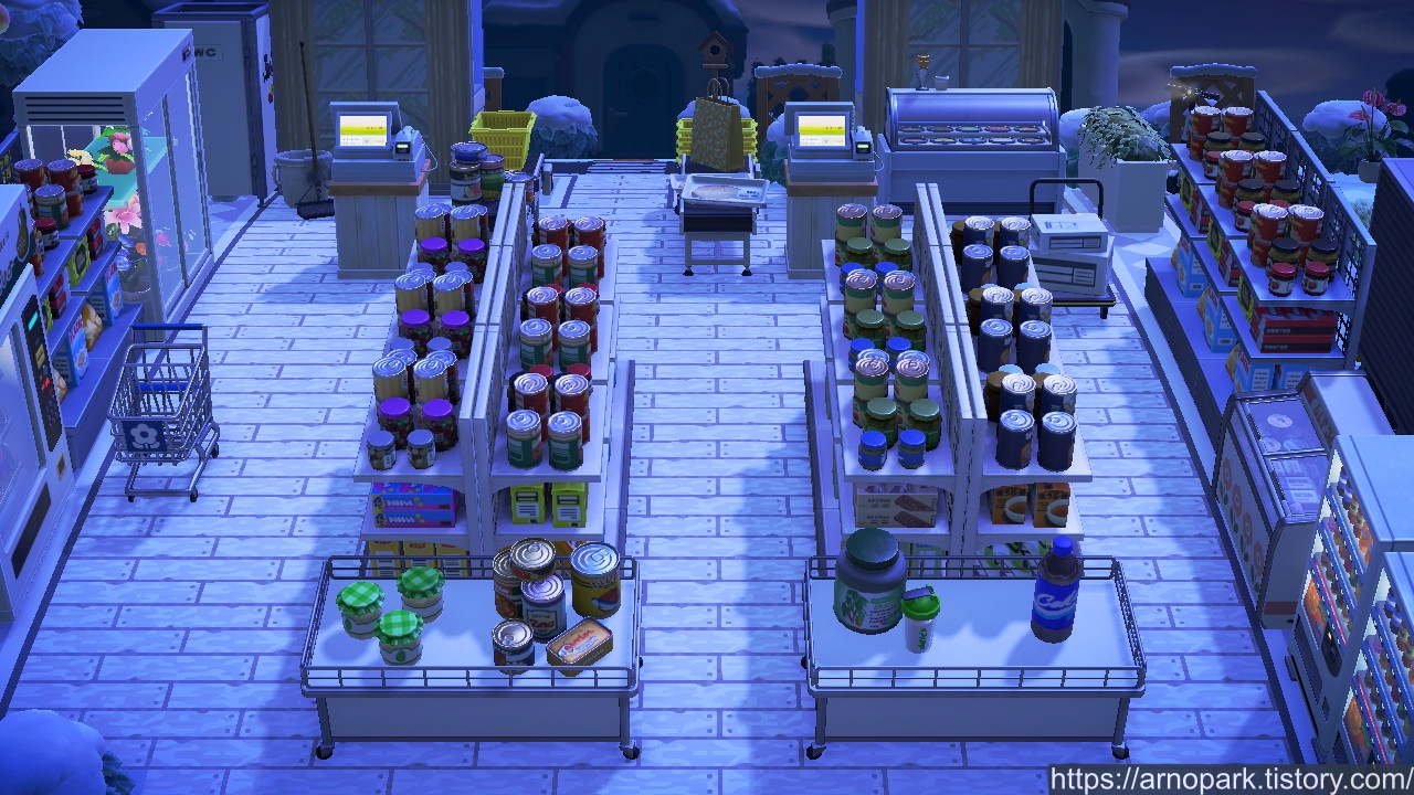 하지만 모여봐요 동물의숲에서는 슈퍼마켓/편의점 증축이 사라지고 말았습니다. 추후 업데이트로 '백화점'까지 추가될 것으로 기대했었지만, 없다고 못이 박힌 상태입니다. 그 아쉬움을 달래고자 직접 섬에 자작 편의점/슈퍼마켓을 지어봤습니다.