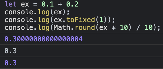해결방법으로는 toFixed(), Math.round(), 외부 라이브러리를 이용하는 것이 있습니다.