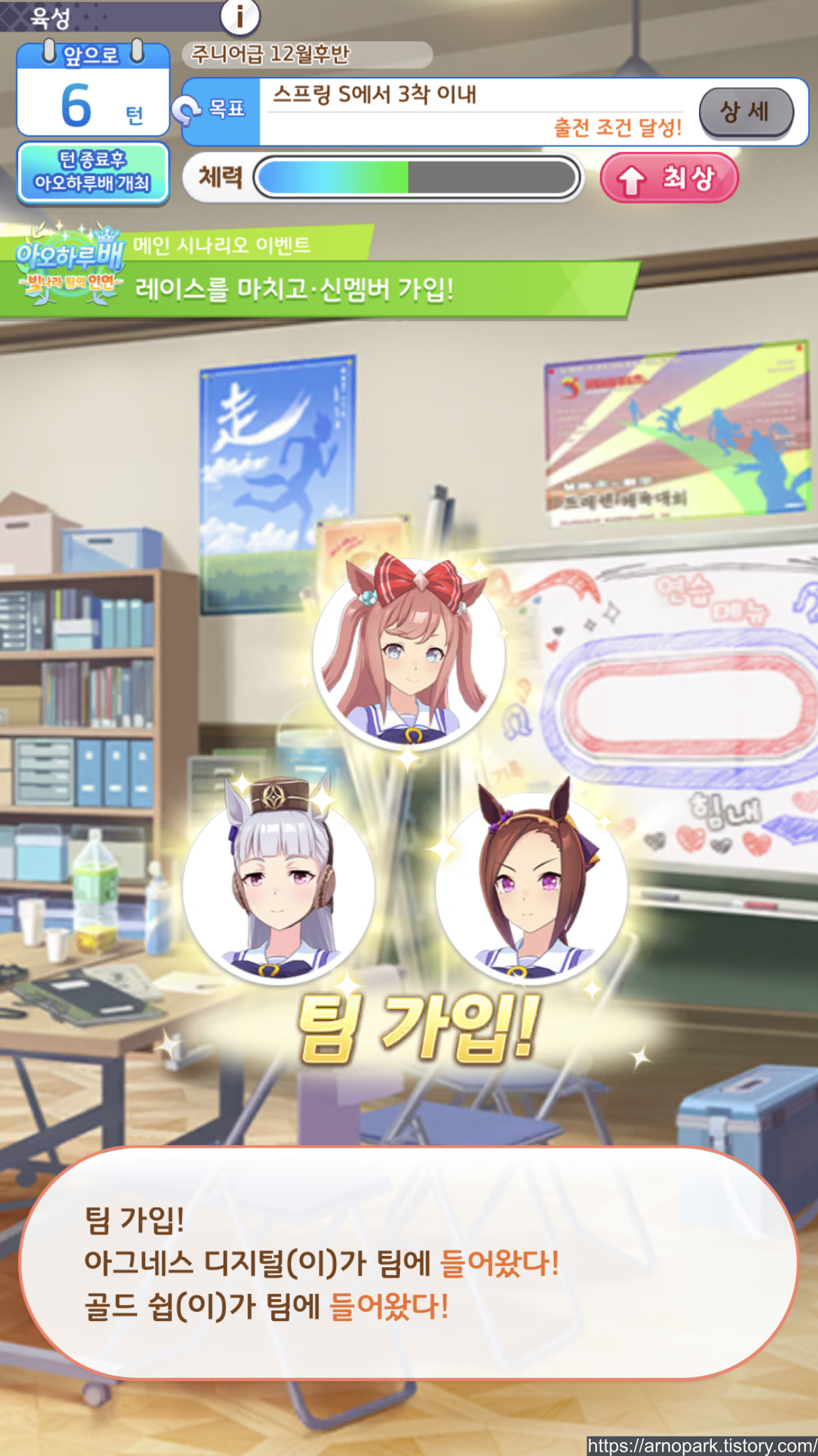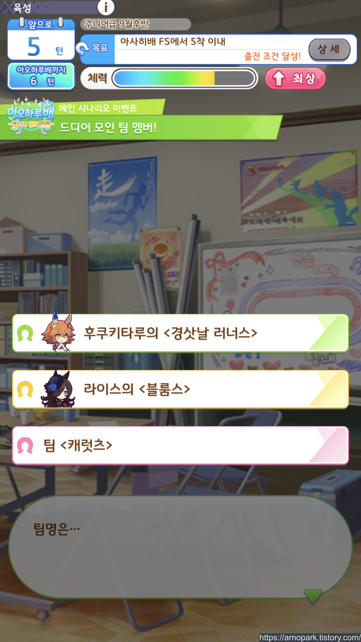 URA 시나리오에서는 내가 키우는 우마무스메 한 명만 키웠다면, 이번에는 팀 단위로 키워야 합니다.