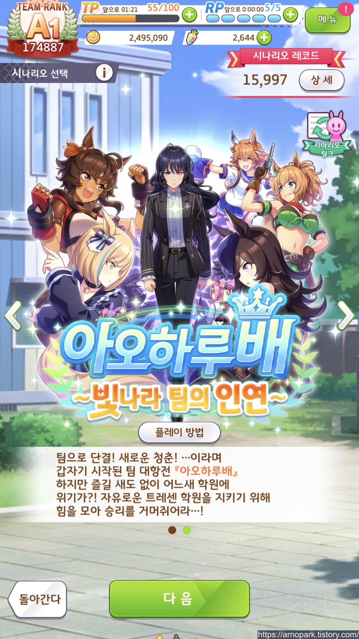 이번에 한국서버 우마무스메의 URA시나리오가 막을 내리고, 아우하루배 시나리오가 시작되었습니다.