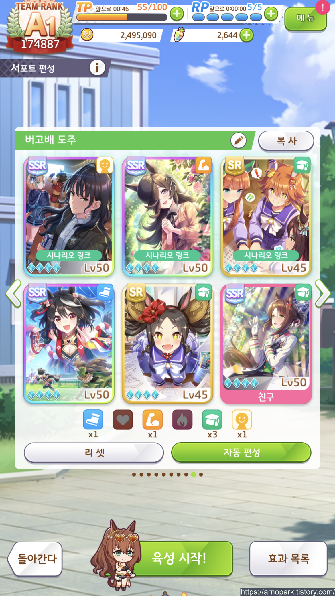 이 카드들은 URA 시나리오 시절의 <크릭 - 타즈나> 조합을 이어서 <쌀 - 대리> 조합으로 사용되는 카드입니다.