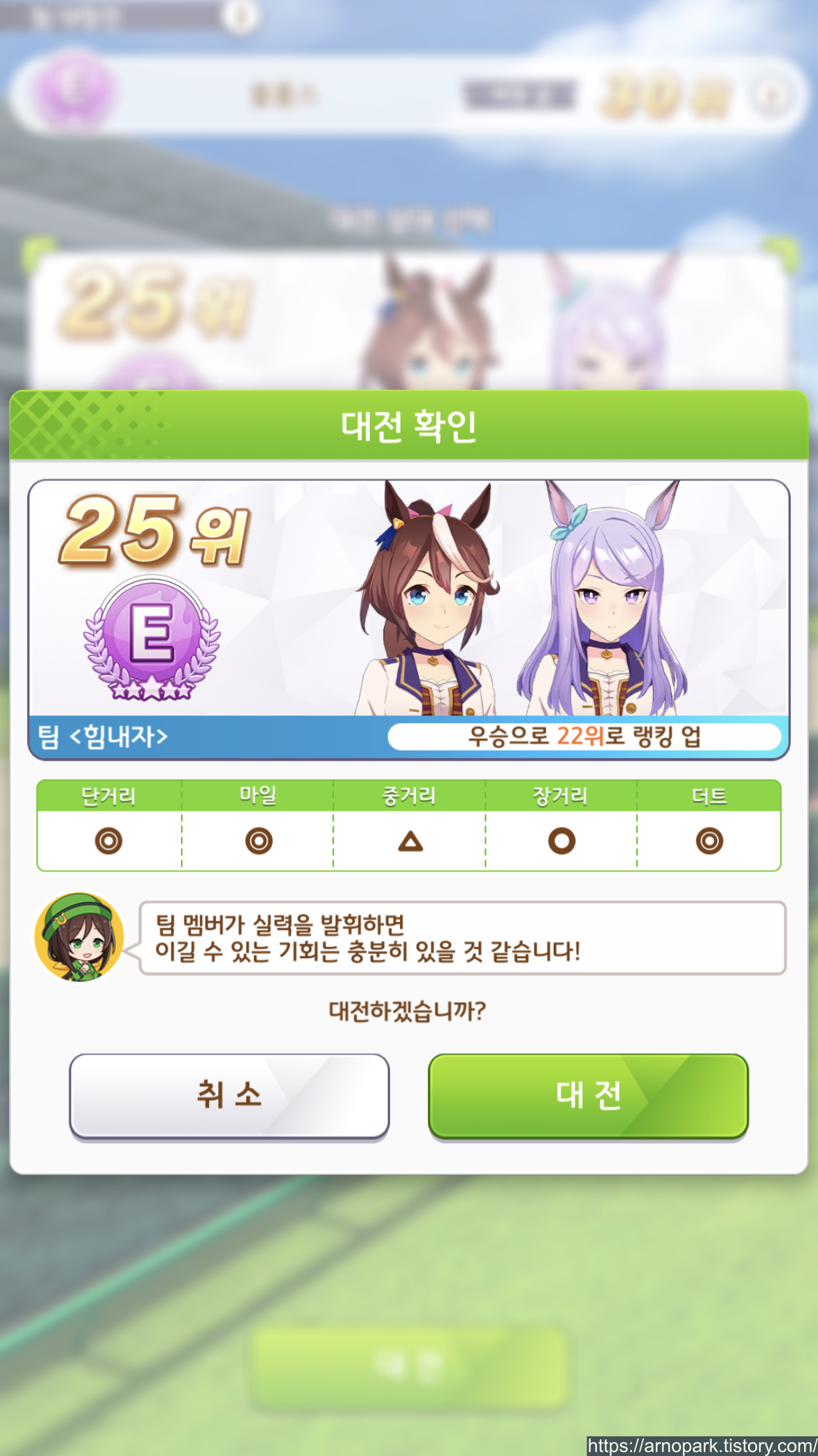 여기에서도 타즈나가 직접 승부예측을 해줍니다. 25위팀의 승부예측표를 보니 승산이 충분히 있어 보입니다.
