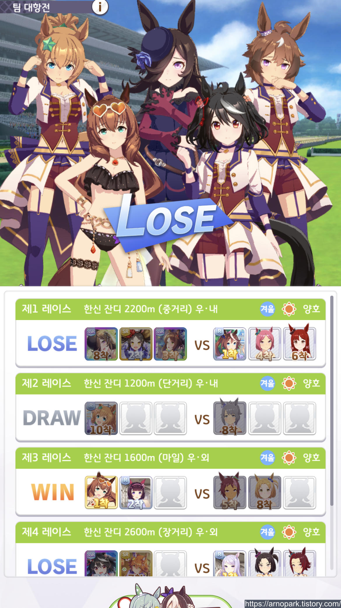 아오하루배에서 한 번이라도 지게 된다면, 그냥 바로 육성 포기하시면 됩니다.