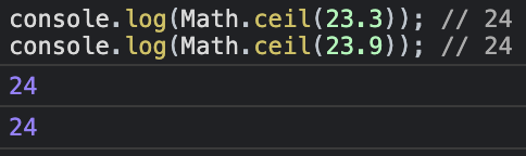 Math.ceil()은 인수로 받은 Number보다 크거나 같은 정수를 return합니다.