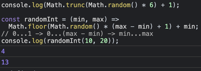 console.log(Math.trunc(Math.random() * 6) + 1);