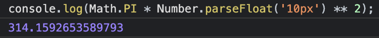 console.log(Math.PI * Number.parseFloat('10px') ** 2);