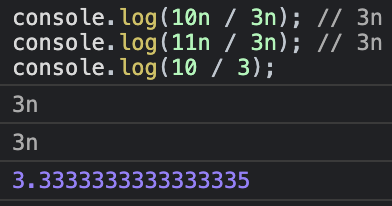 console.log(10n / 3n); // 3n