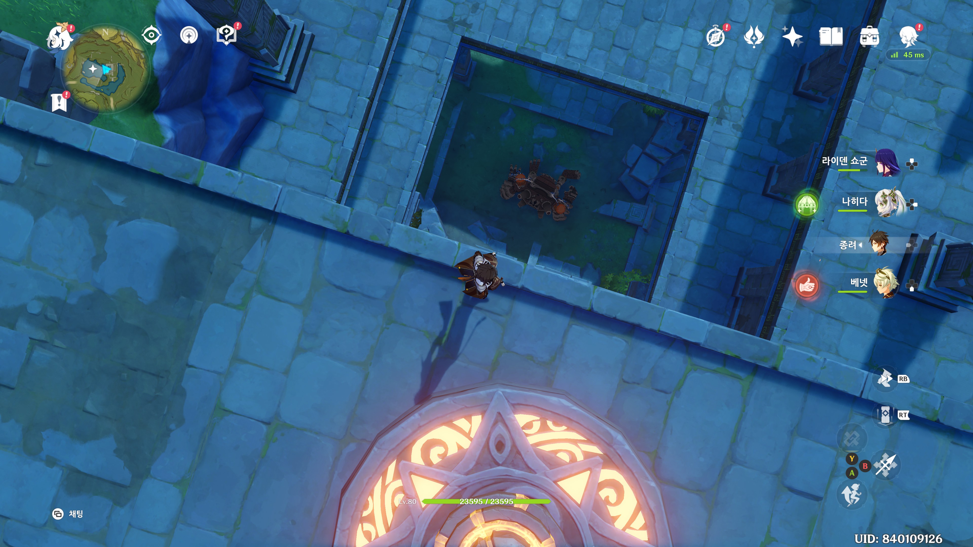각각 불을 붙이고 나서, 바위 원소 반응 석상에 바위 원소 스킬을 사용해주면 첫 번째 기믹이 끝납니다.