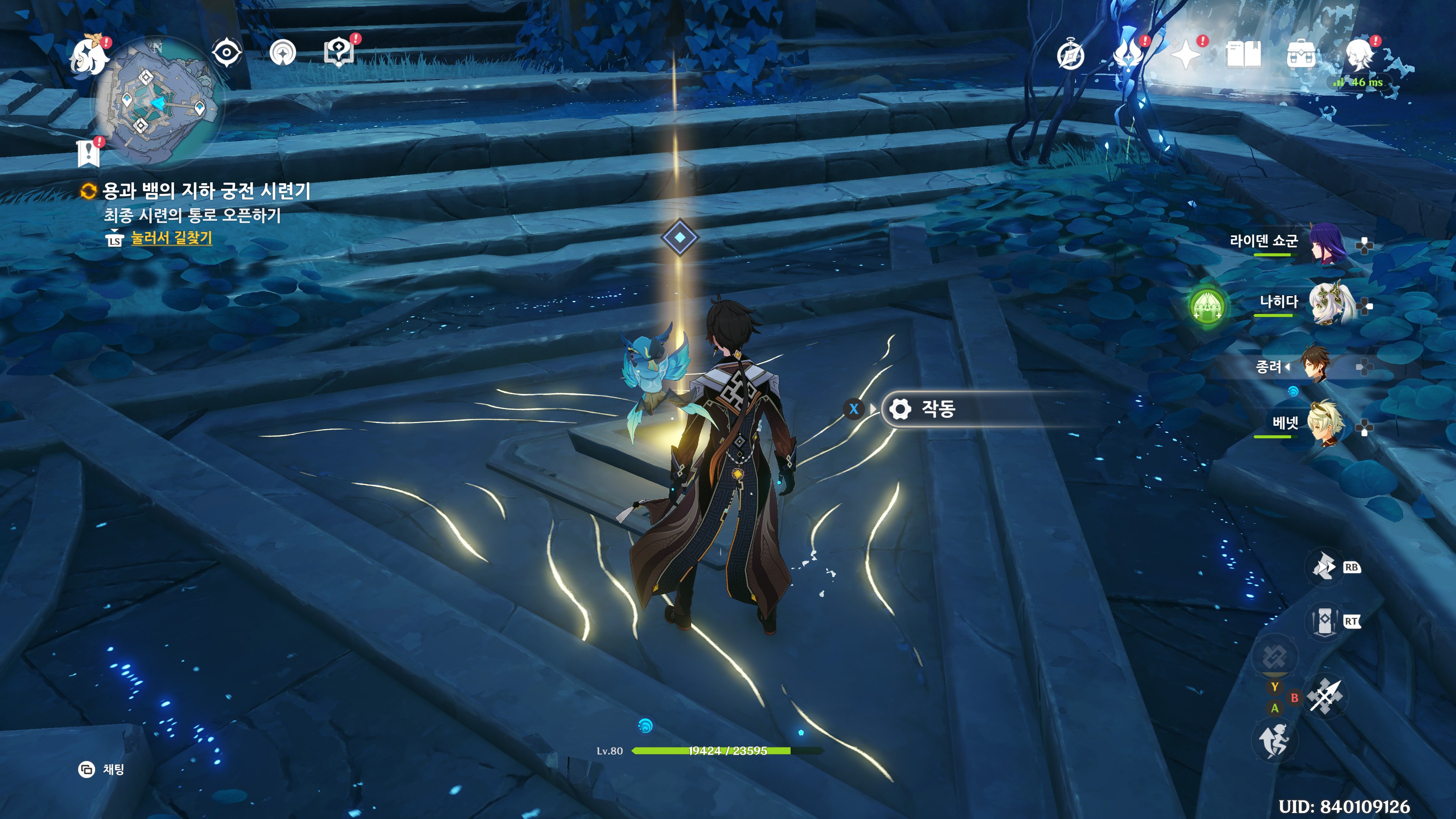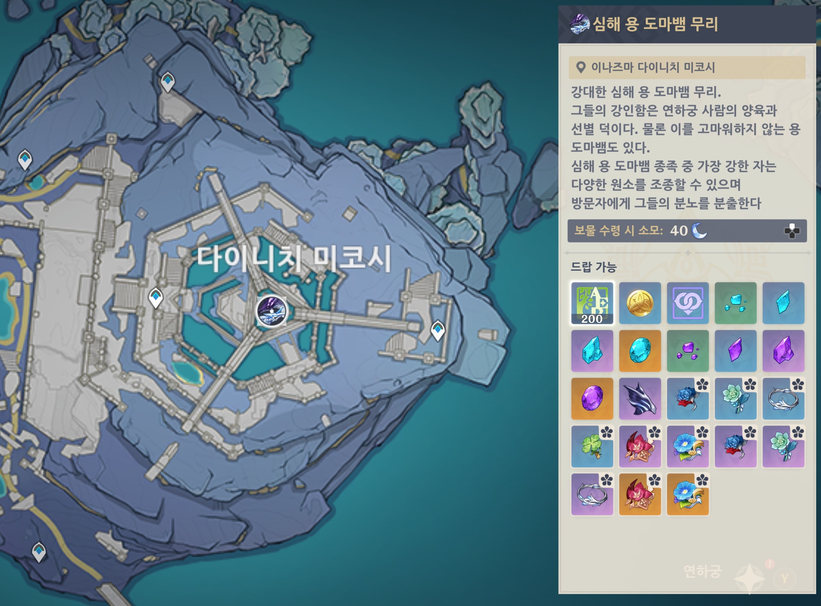 심해 용 도마뱀 무리를 잡으러 갈 때 물 원소 캐릭터를 한 명 데려가는 것을 추천드립니다!