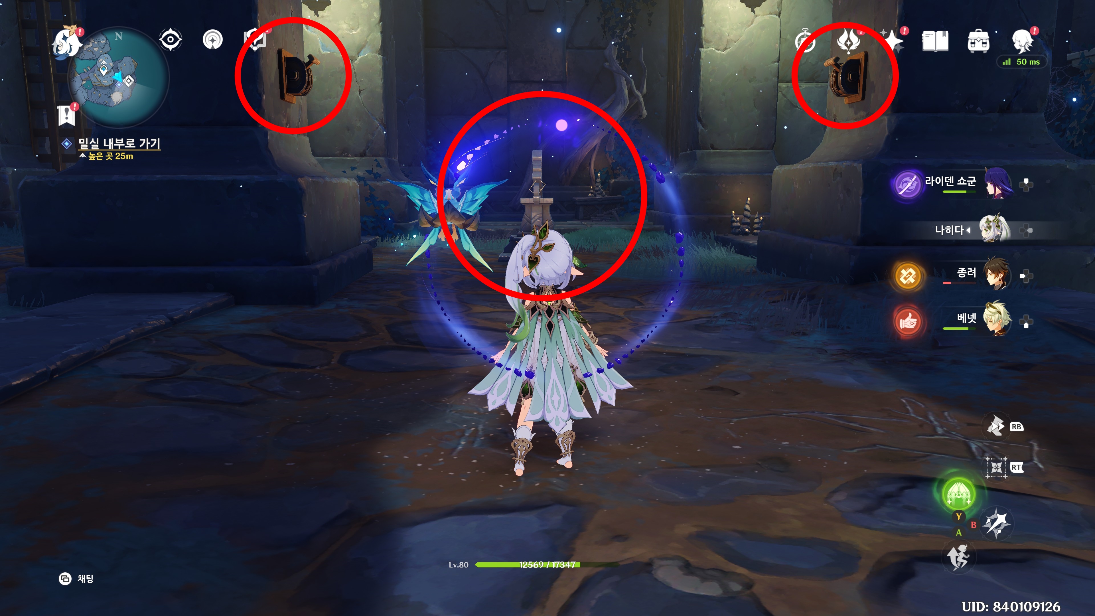 연하궁 사전 퀘스트에서 얻었던 '월광욕 연못의 열쇠'를 장치에 넣어주면 문을 열 수 있습니다.