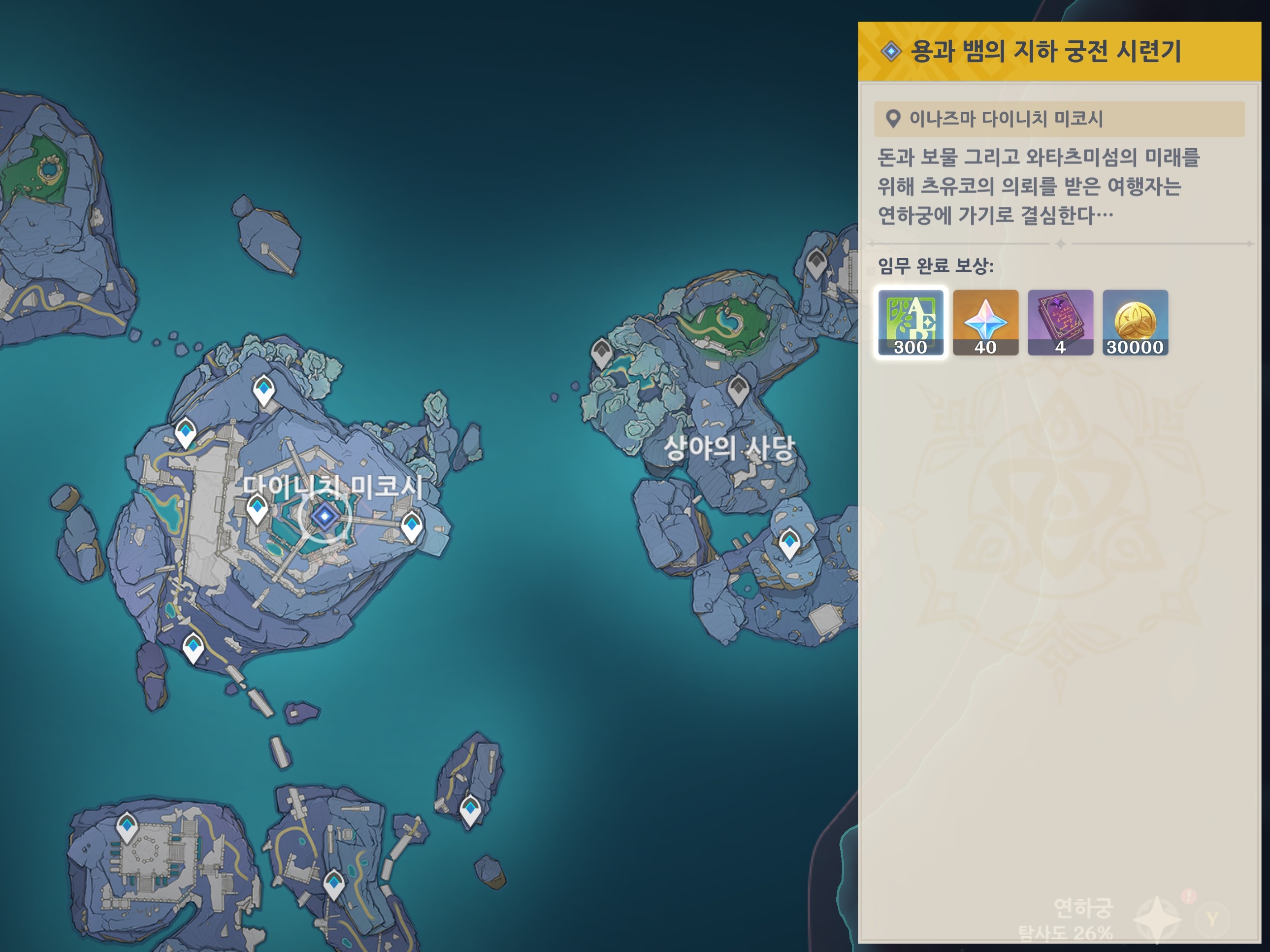 저번 연하궁 사전 퀘스트에 이어서, 이번엔 연하궁을 전부 돌파해보도록 하겠습니다.