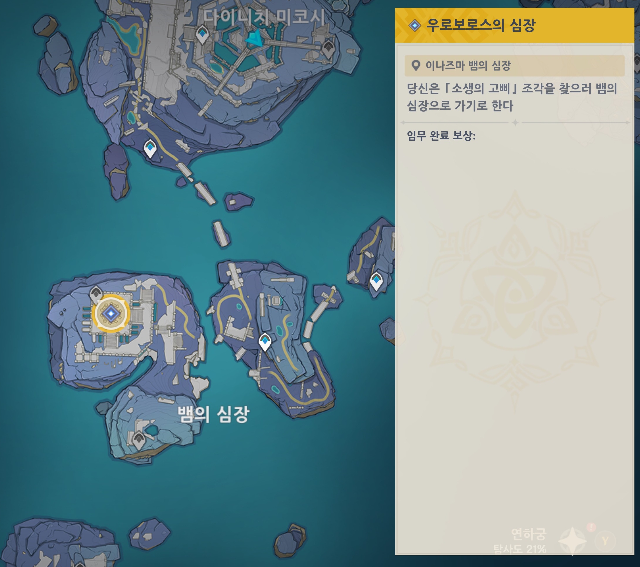 첫 번째는 우로보로스의 심장을 찾으러 갑니다. 위치는 뱀의 심장 부근에 있습니다.