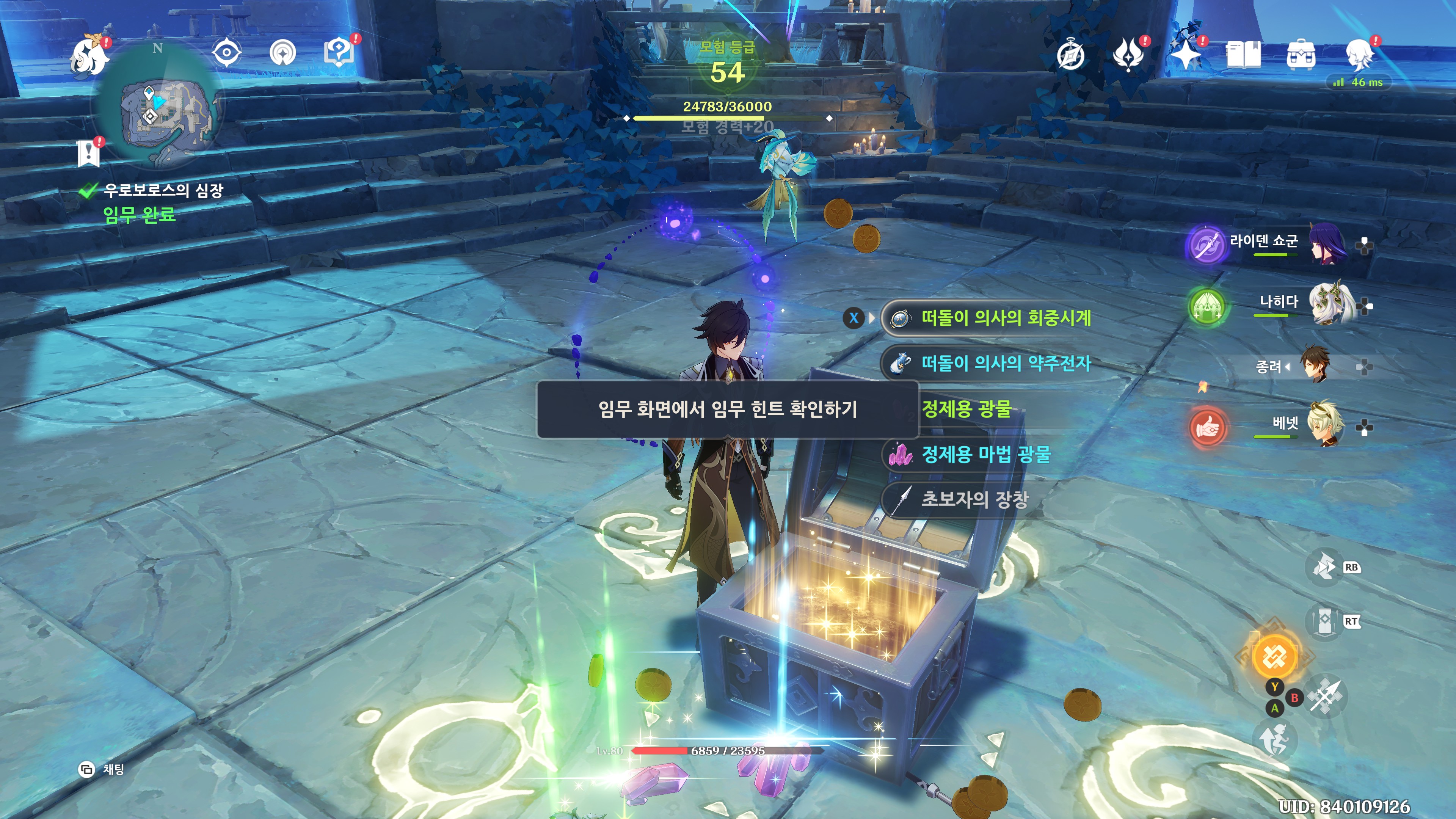 장치를 활성화 해주고, 옆의 상자를 먹어주면 퀘스트가 끝납니다.