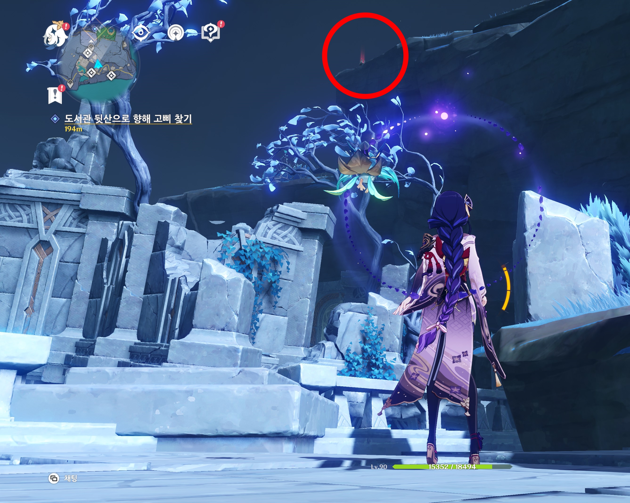 퀘스트마커 근처로 간 후, 사진의 빨간 원이 있는 곳으로 가줍시다.