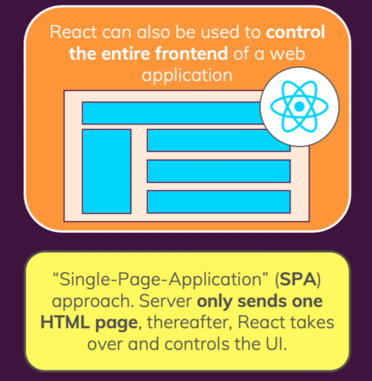 리액트는 싱글 페이지 앱이라는 말을 자주 들으실 겁니다. 싱글 페이지 앱인 경우, 서버는 user에게 js파일과 단 하나의 html 페이지만 보냅니다. React는 하나의 index.html 위에서 마치 다양한 페이지가 있는 것처럼 작동합니다. React로 하나의 html 페이지에서 여러 페이지들을 만들어내고, 심지어 페이지 전환에도 React를 사용합니다.