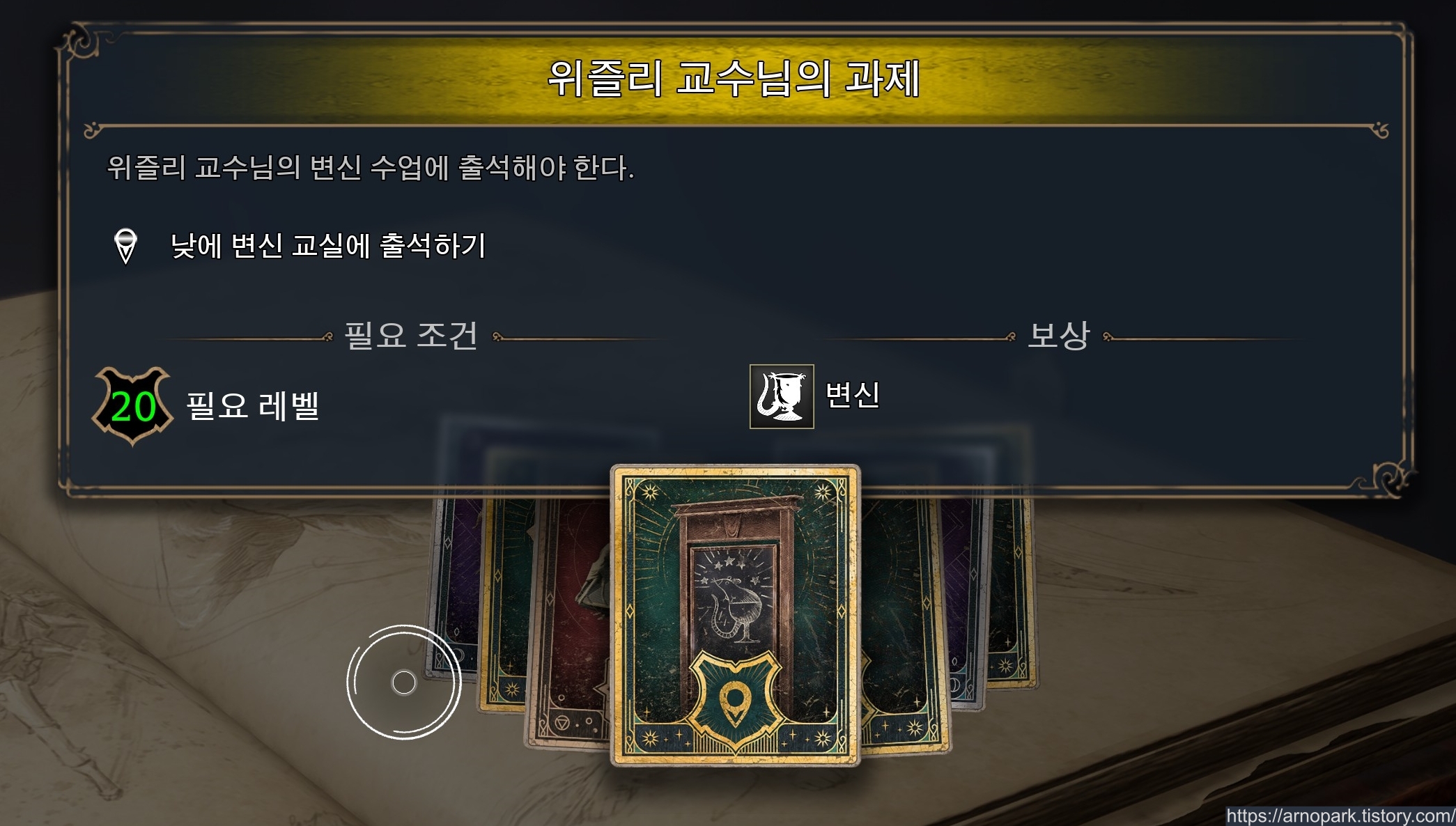 이제 위즐리 교수님의 변신 수업에 출석해서, 변신 마법을 얻어봅시다!