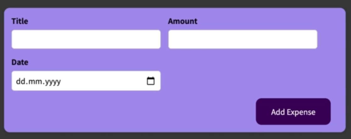 위 코드에는 3개의 input 컴포넌트가 있습니다. 각각 title, amount, date라는 값을 입력받는 역할을 가지고 있습니다.