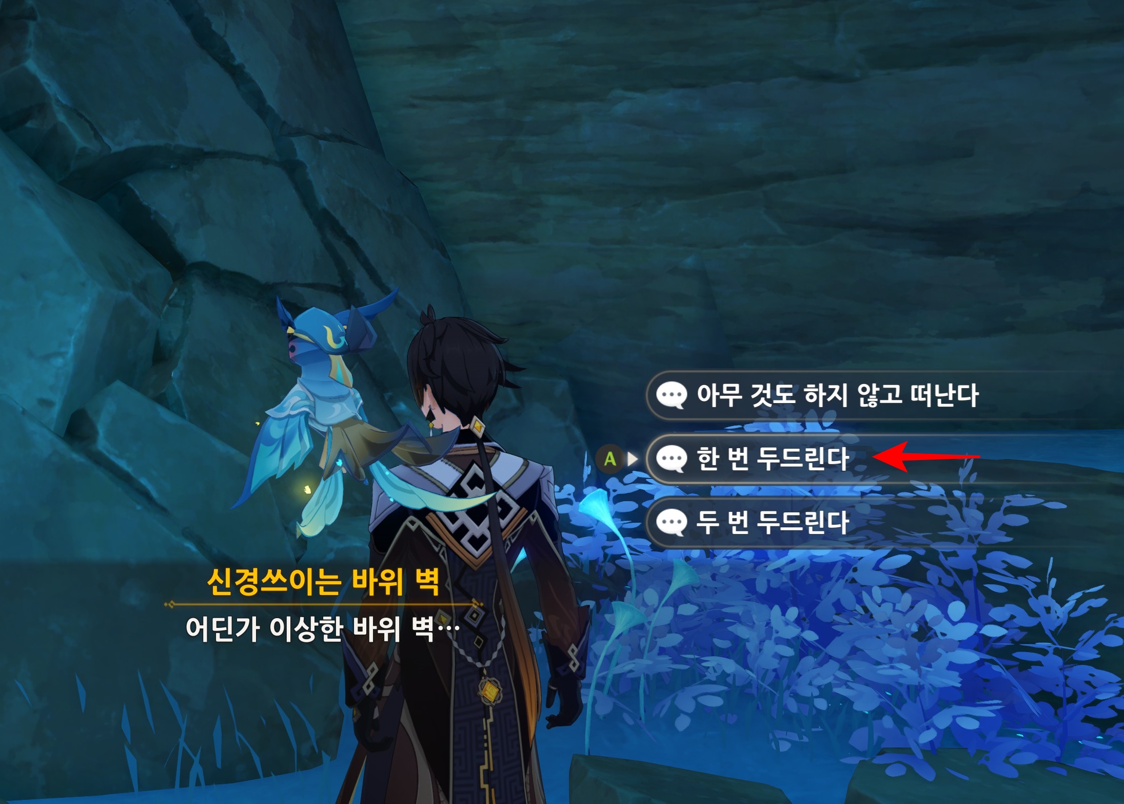 다가가면 '마음에 걸리는 절벽'과 상호작용을 할 수 있습니다.