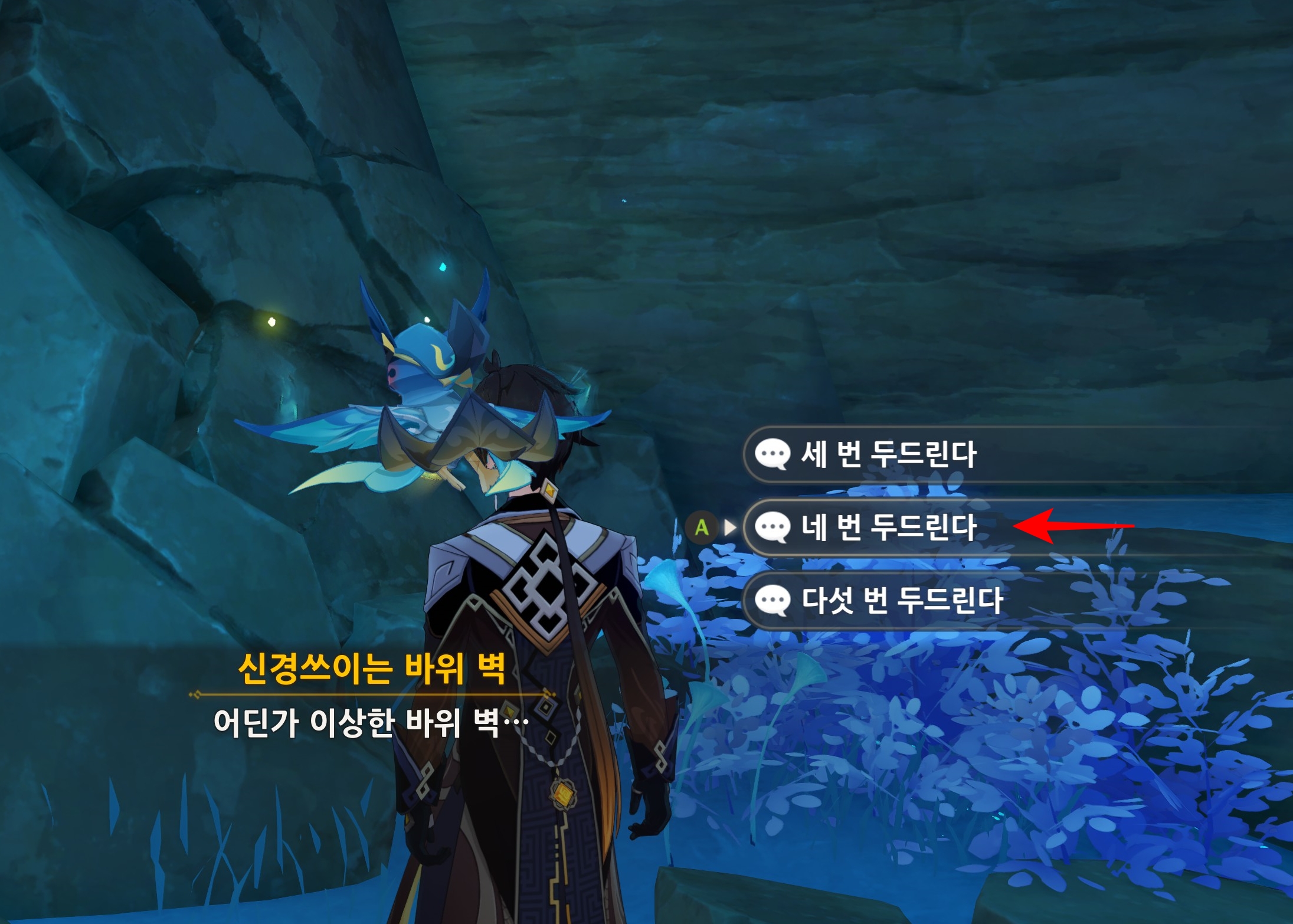 아야카 전설임무 [영원한 약속]에서 바위 벽을 찾으라는 미션이 있습니다.