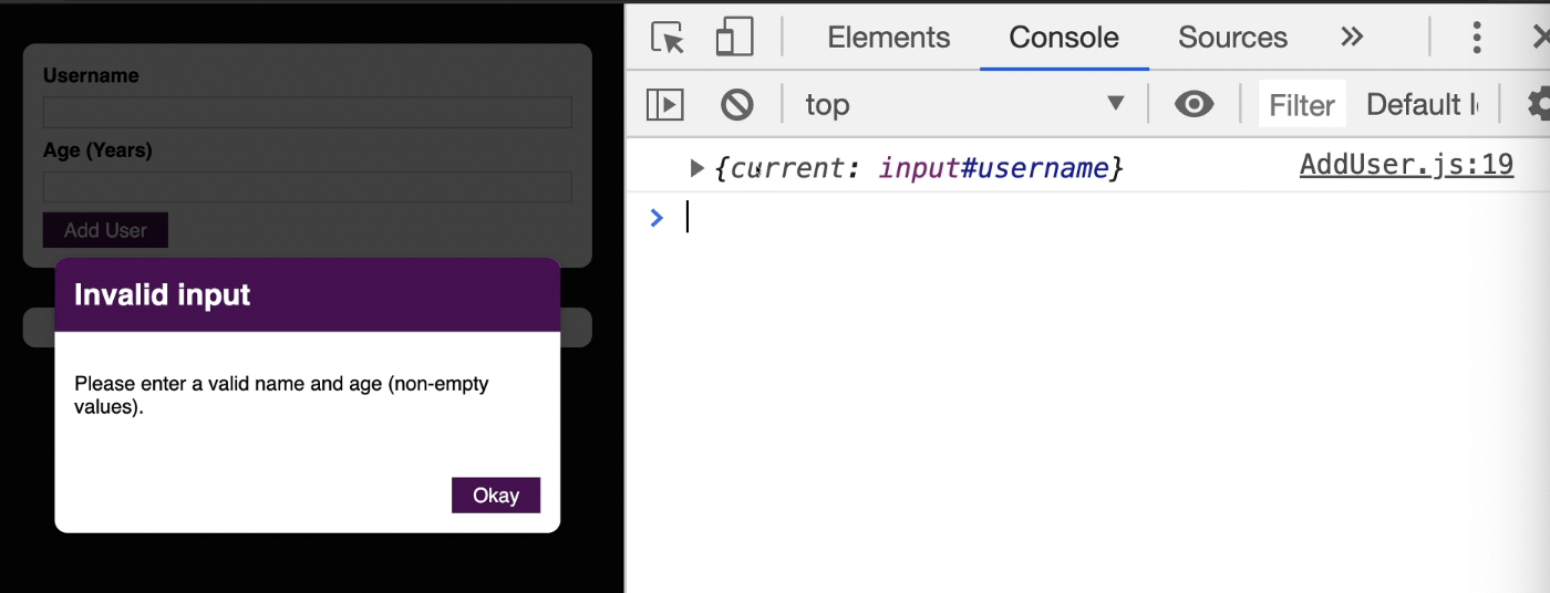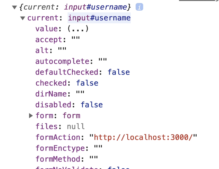 이 안에는 ref와 연결된 DOM 노드가 고스란히 저장되어 있습니다. 이때 value property를 접근하면 DOM에 저장된 value를 알 수 있습니다.