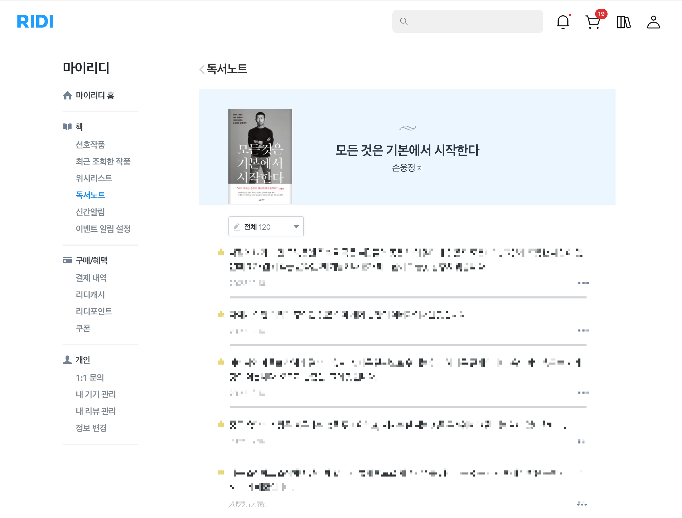 (독서노트 페이지 링크 : https://ridibooks.com/reading-note/timeline)