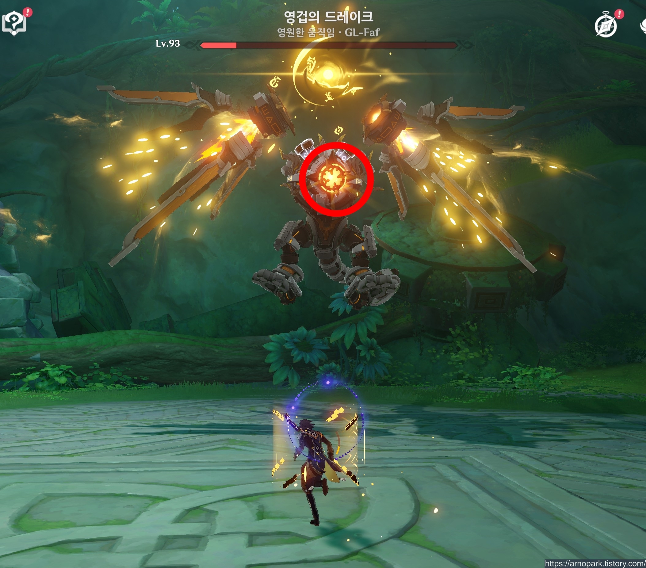 영겁의 드레이크는 일반 유적 드레이크와 패턴이 유사하여 딱히 어렵지 않습니다. 특정 원소를 챙길 필요도 없습니다.