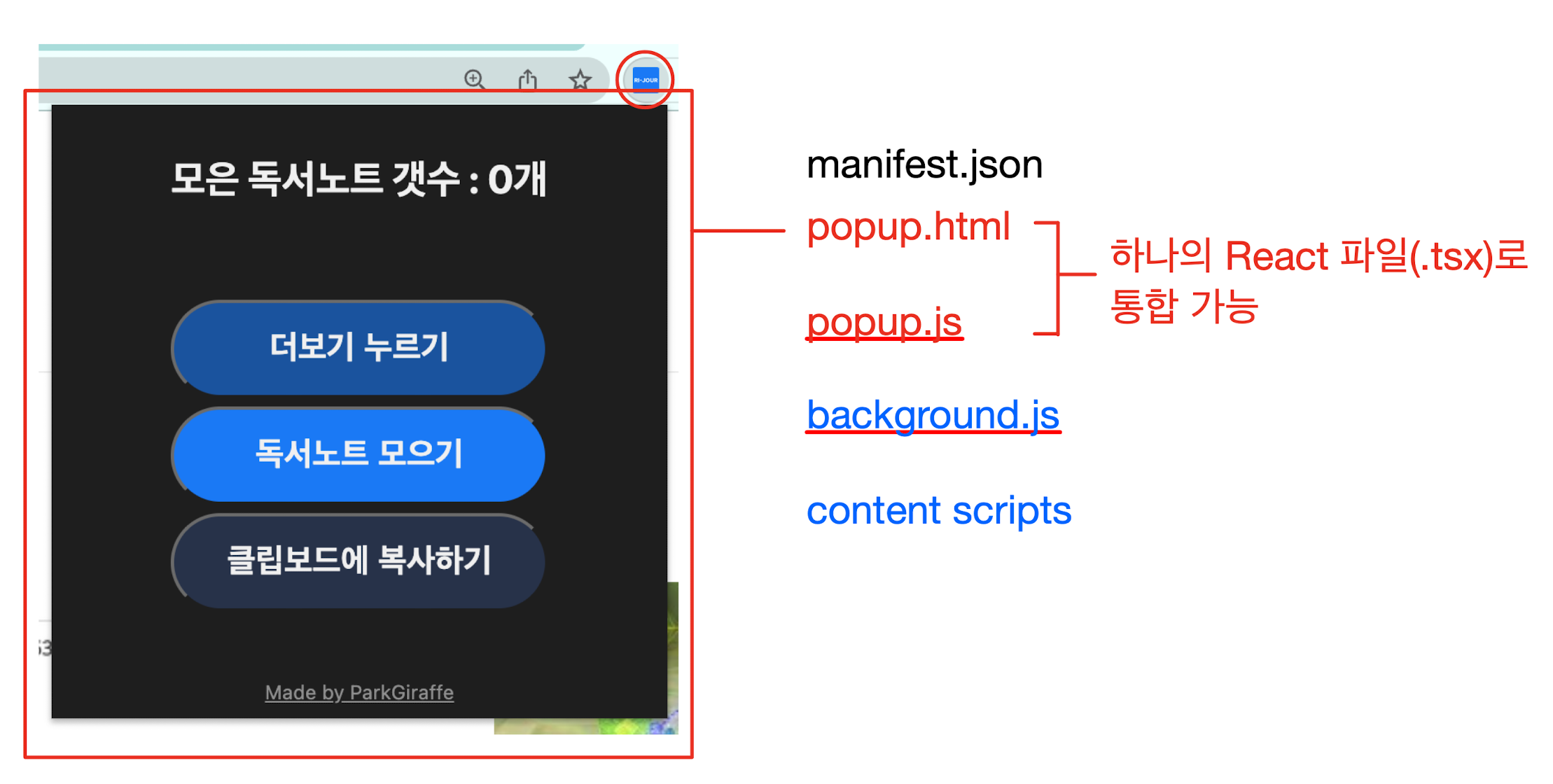 React는 SPA(싱글 페이지 앱)입니다. 크롬 확장프로그램은 여러 개의 html 파일(popup.html, index.html 등)과 js파일 (background.js, content scripts)를 필요로 하기 때문에, 하나의 html과 js파일로 build하는 React 방식은 크롬 확장프로그램에는 어울리지 않습니다.