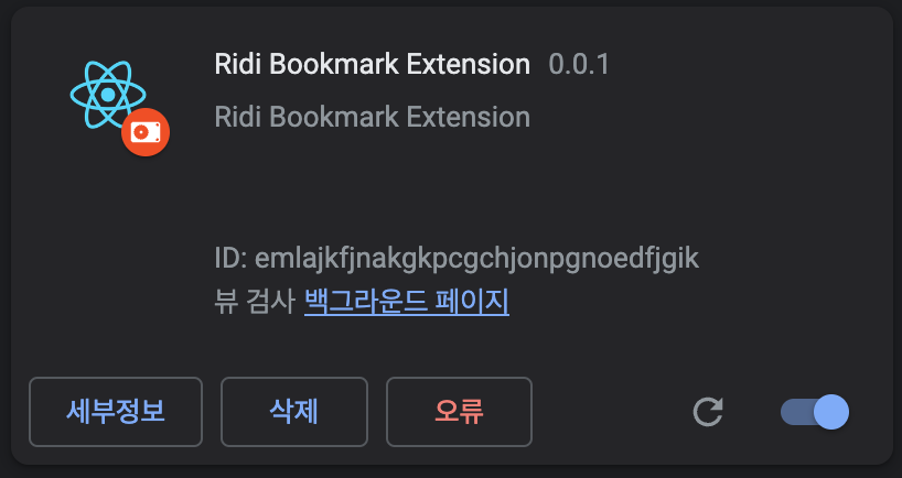 그러면 이렇게 직접 build한 확장프로그램이 크롬에서 실행되는 것을 확인할 수 있습니다.
