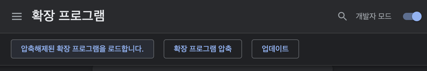 우측 상단의 개발자 모드를 킨 후, '압축해제된 확장 프로그램을 로드합니다.' 버튼을 클릭합니다.