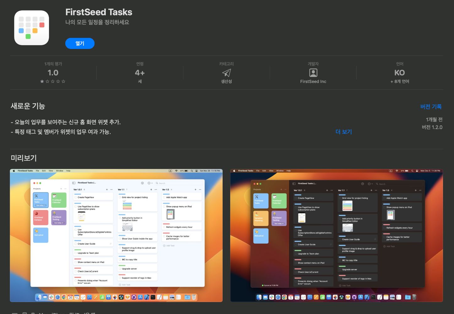 칸반 보드 앱으로 FirstSeed Tasks 앱을 사용했습니다.