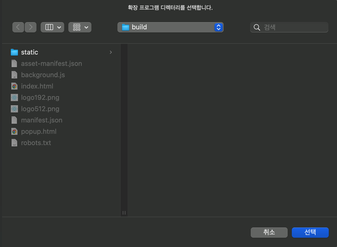 그리고 아까 생성한 build 폴더를 선택합니다.