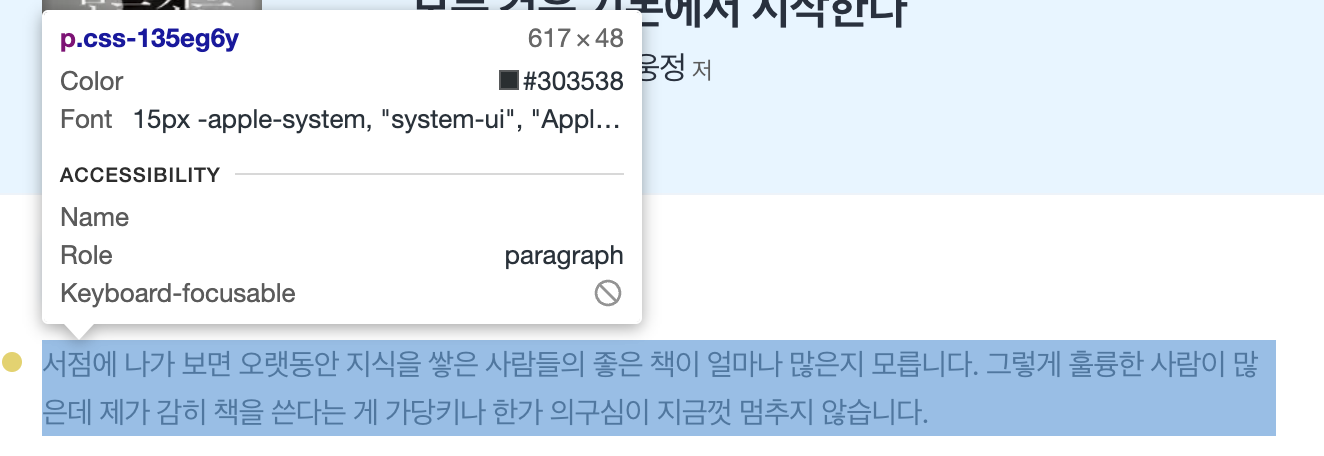 실제 리디북스 독서노트의 글귀에 적용된 class를 전달한 것입니다.