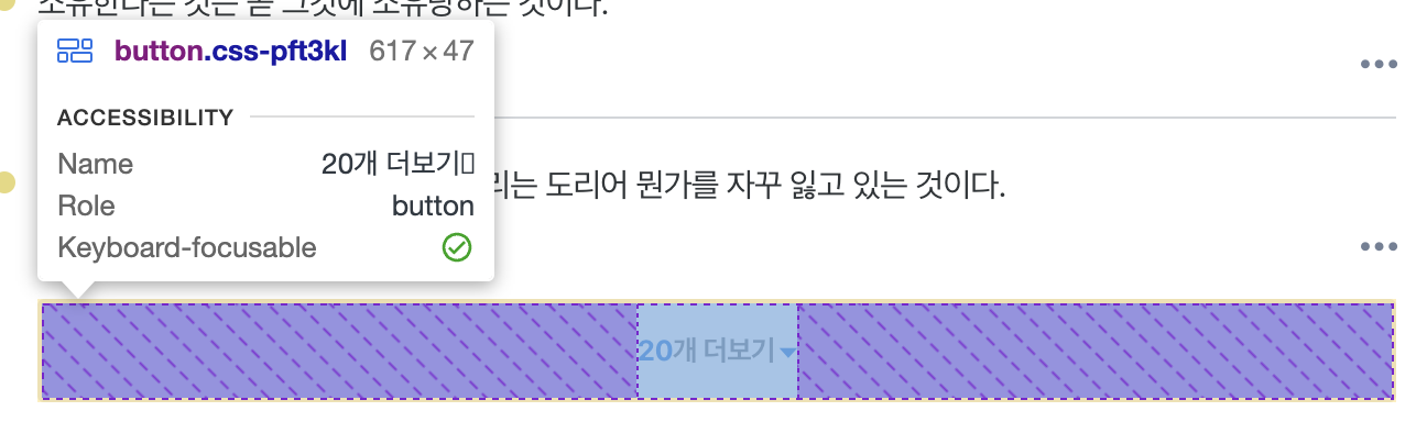 크롬 확장프로그램은 탭의 현재 DOM에 올라온 텍스트만 긁어올 수 있기 때문에, '20개 더보기' 버튼을 전부 누른 후에 글귀를 긁어와야만 모든 글귀를 긁어올 수 있습니다. 만약 버튼을 누르지 않으면, 당장 보이는 몇 개의 글귀만 긁어와집니다.