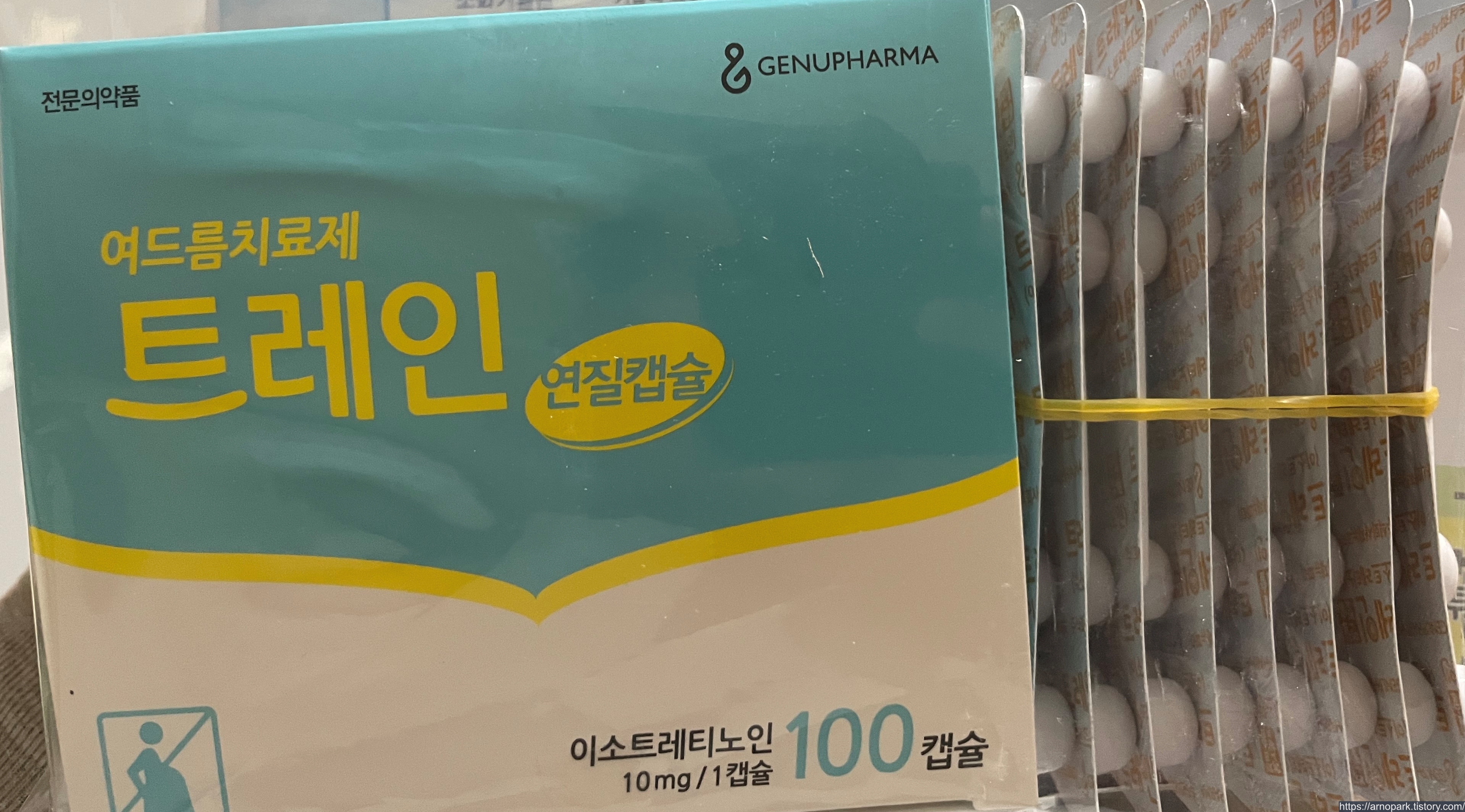 트레인은 이소티논의 카피약으로 성분이 100프로 동일합니다. 사실 확인을 위해 의사에게 물어보셔도 됩니다.
