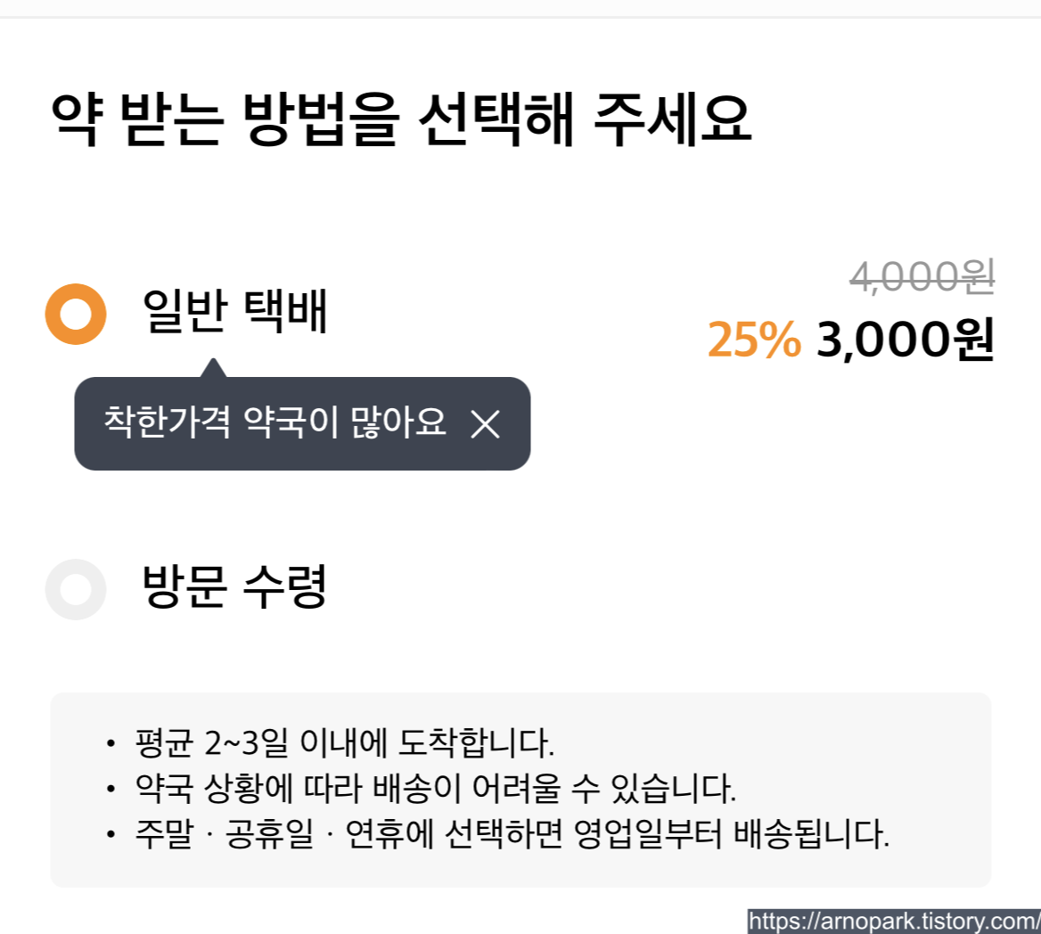 착한가격 약국에서 사기 위해 일반 택배로 선택합니다.