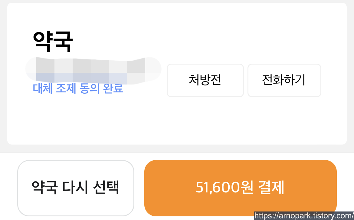 가격이 마음에 들면 결제를 하고, 아니면 다시 다른 약국을 선택할 수 있습니다.
