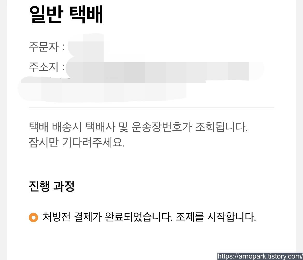 결제하고 나면 약 조제 시작과 배송이 진행됩니다.