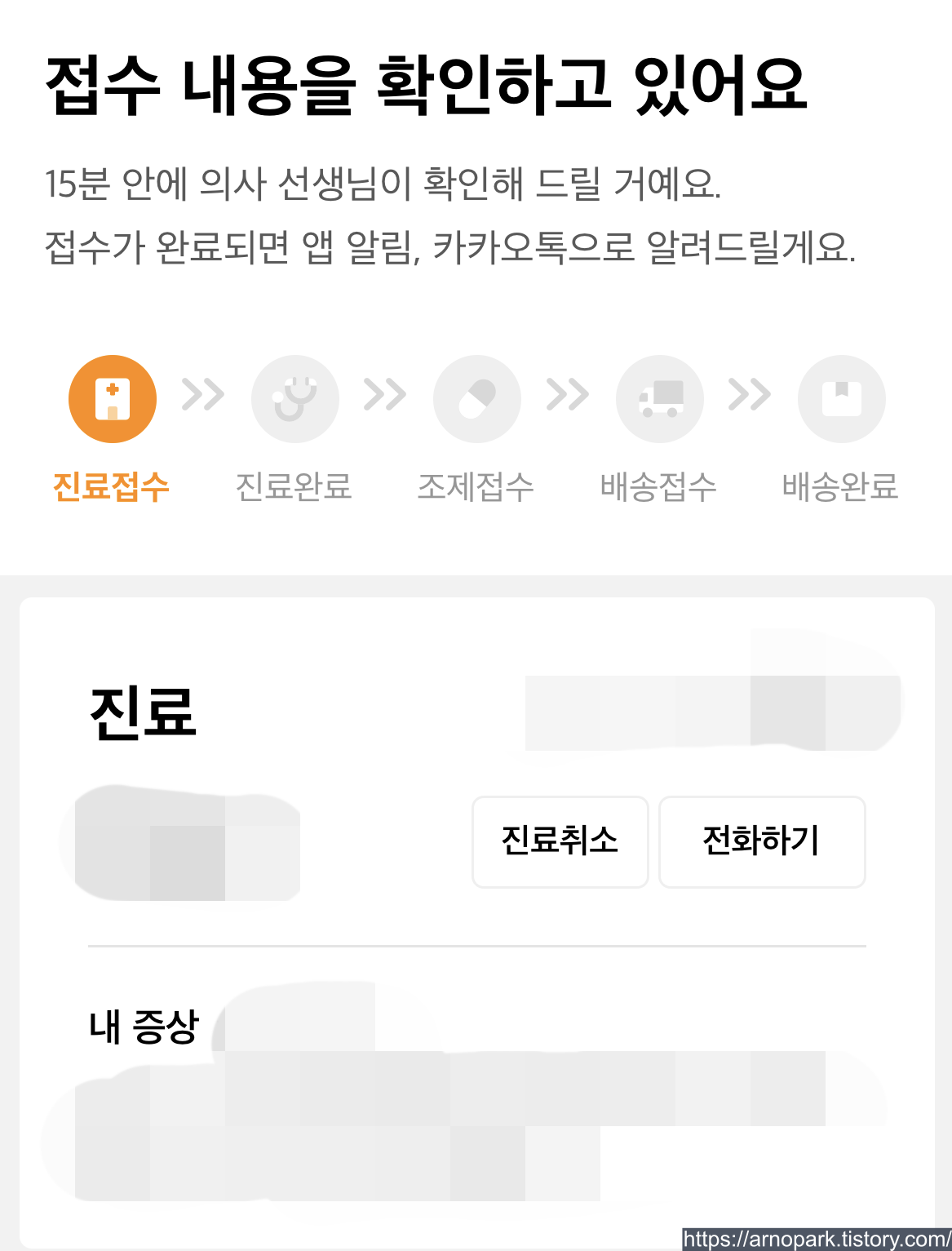 진료가 접수되고 3분 내외로 기다리면 의사로부터 전화가 옵니다.