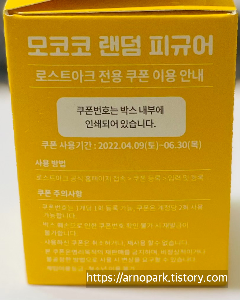 모코코 피규어 상자 내부에는 실제 로아 계정에 쓸 수 있었던 쿠폰이 적혀 있습니다.