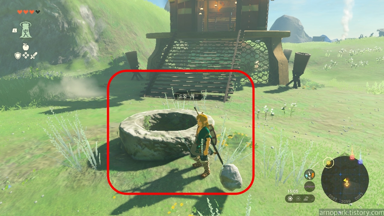 조망대 앞에 우물이 하나 있는데, 희미한 대사가 들립니다.
