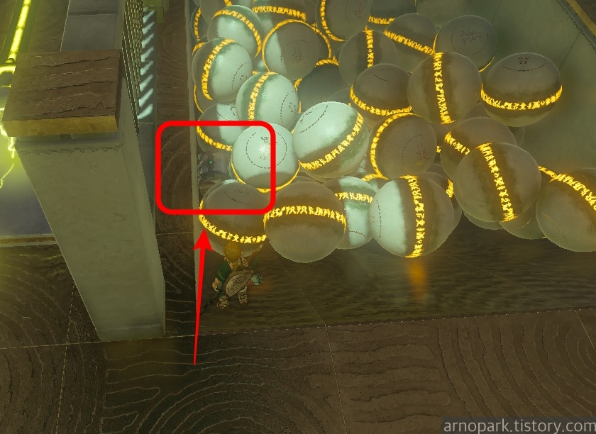 돌아가는 물레 밑에 구슬이 엄청 많이 있는데, 이 구슬 더미 안에 상자가 숨어 있습니다.
